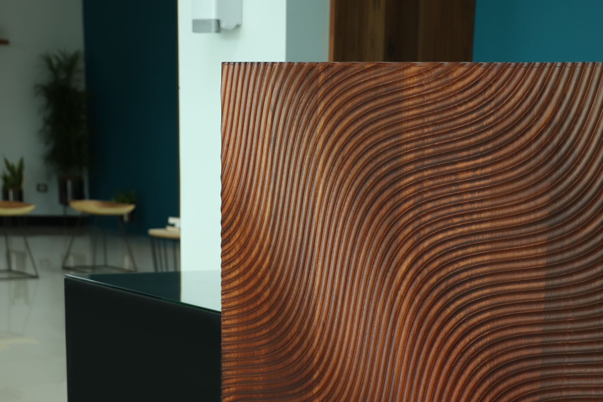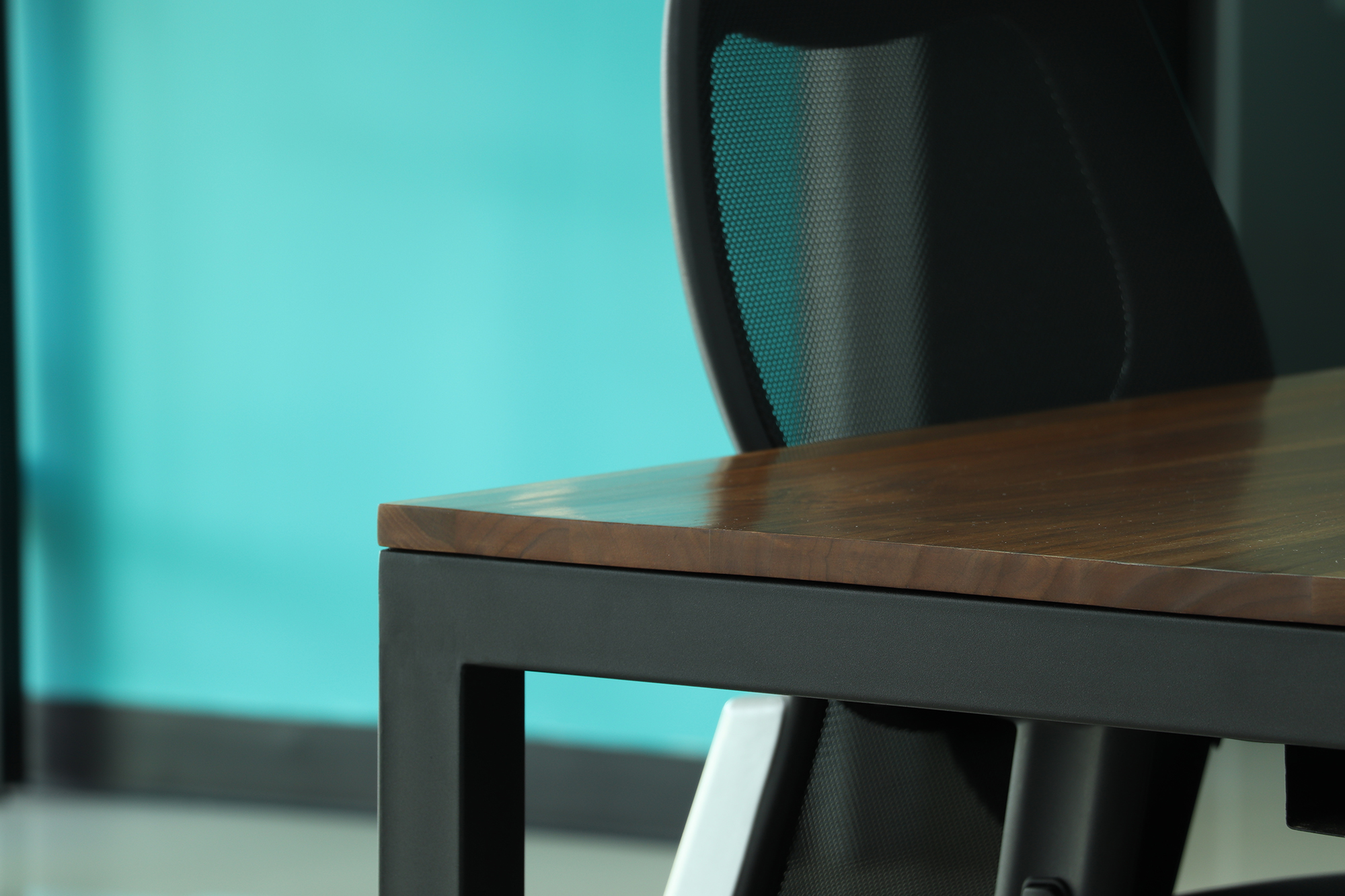 Diseño y manufactura de mobiliario colaborativo de trabajo en madera de laurel, metal y vidrio temperado. Espacios de trabajo compartido, salas de reuniones, recepción y cocineta.