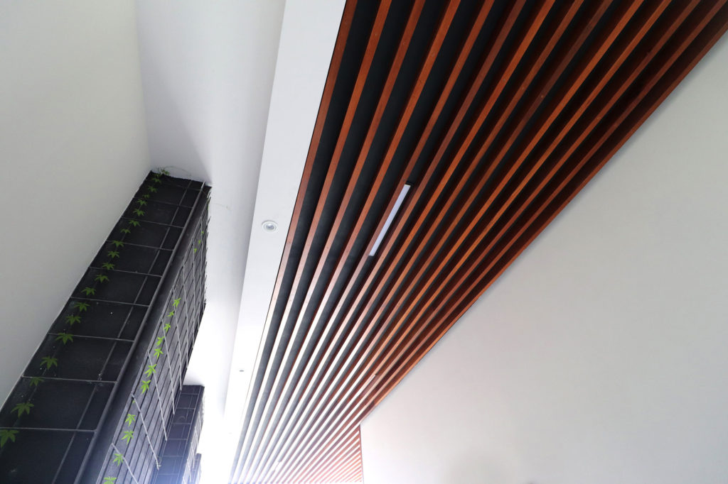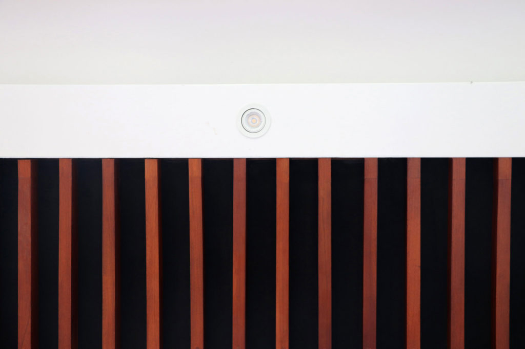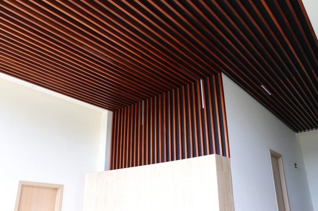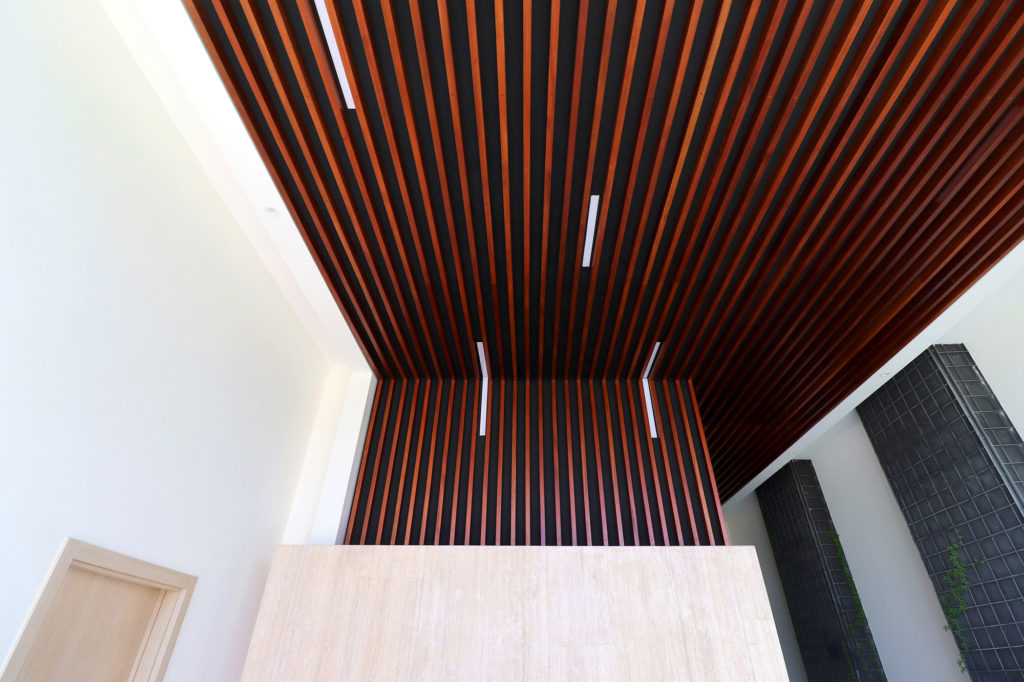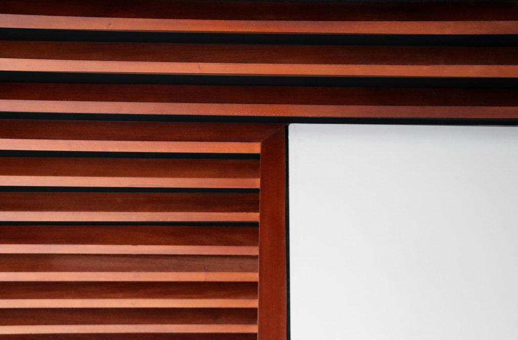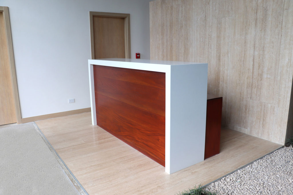 Proyecto de Millwork con piezas de madera sólida de cedro de 2” x 3”, las cuales en la parte más extensa poseen longitudes de más de once metros. Asimismo, se trabajó el mueble de recepción en cuarzo Santamargherita y madera sólida de cedro.
